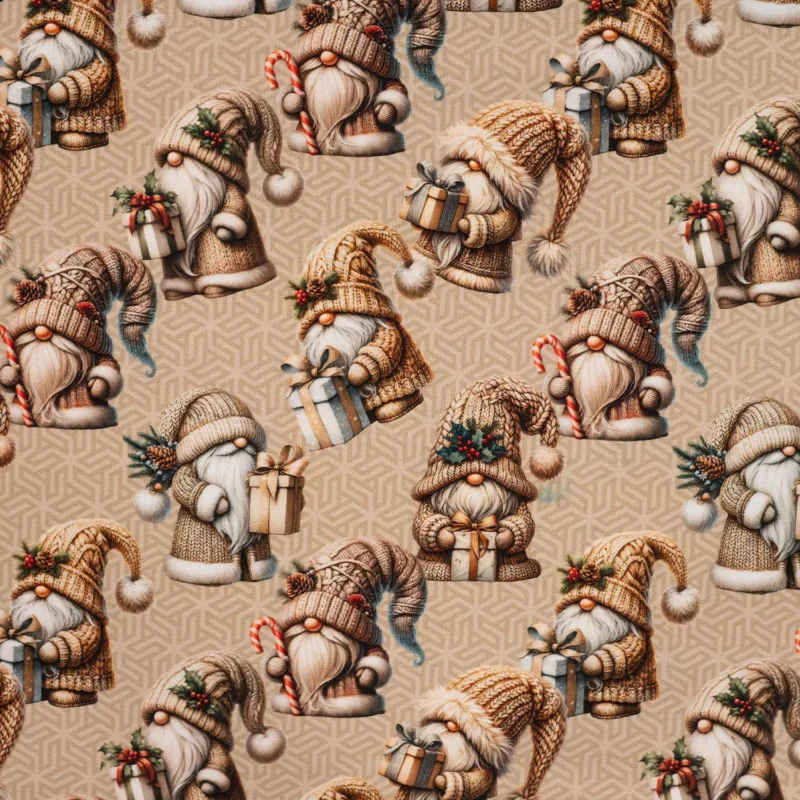 Domov Úplety Vianoce Digitálna teplákovina – Vianočný škriatok na bežovom podklade
