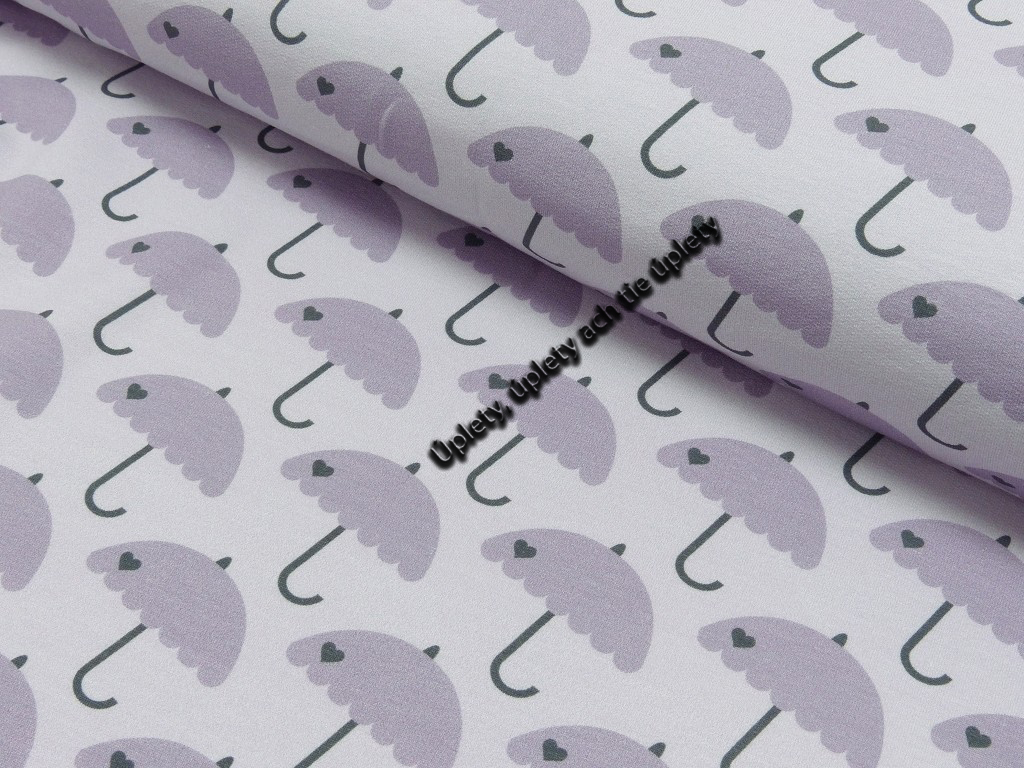 Dizajnová teplákovina – dáždniky sivo – ružové
