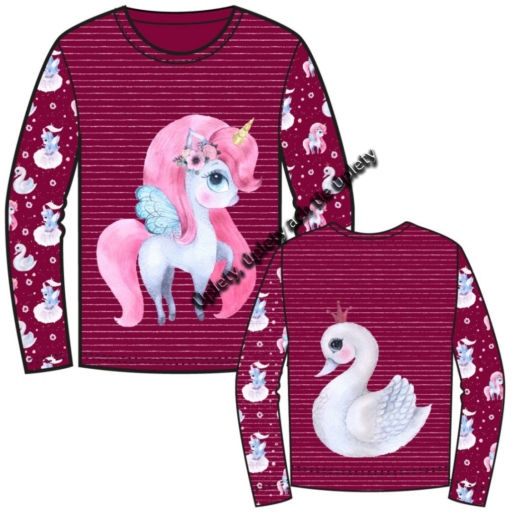 Dizajnový úplet – labutky a jednorožce malé bordó